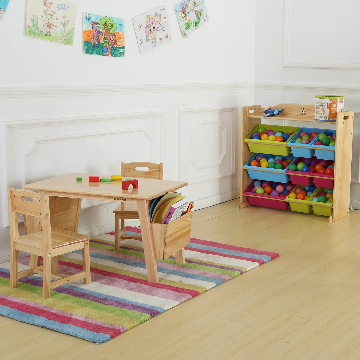 KRAND Kids Solid Wood Table and 2 Chair Set with Storage Desk and Chair Set for Children Toddler Activity Table (Solid Wood/Natural)