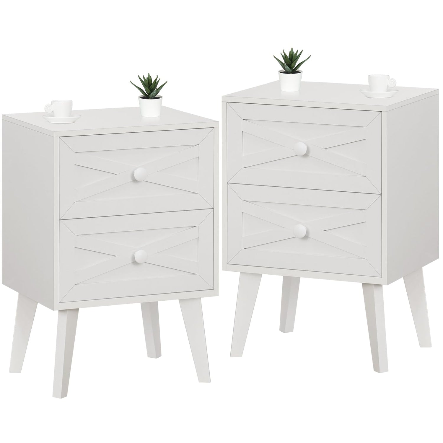 Nightstand Set of 2, White End Table with 2 Drawers Barn Door Decorated - White / Set of 2 is backordered and will ship as soon as it is back in stock.