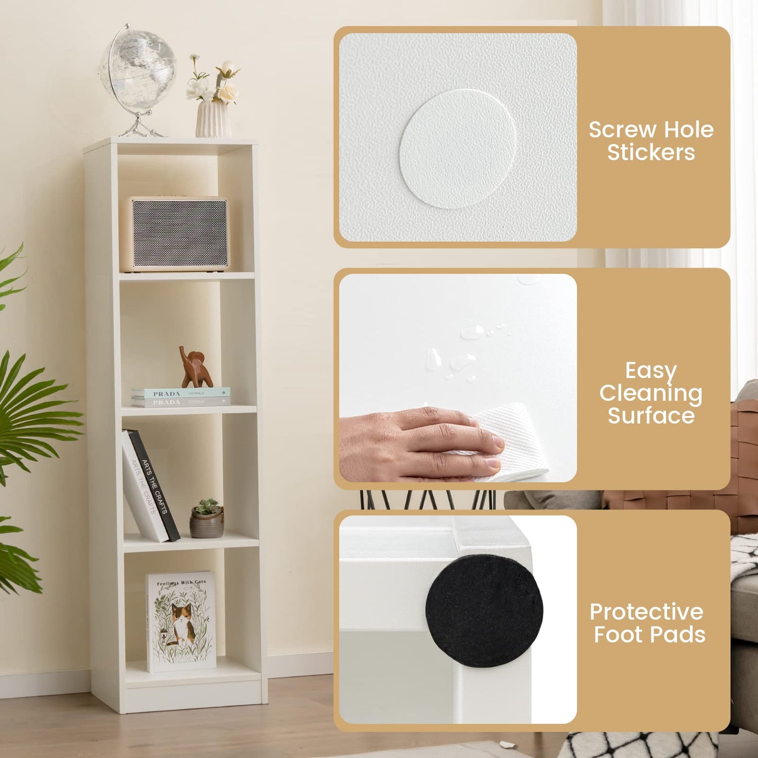 - [Easy Assembly & Wide Application]: Comes with illustrated instructions and complete accessories, the 5 shelf bookcase is easy to put together whether you are skilled or not. Meanwhile, with the simple and stylish appearance, the 4-cube bookshelf can go well with the decorations in living room, study room, bedroom and kid’s room.