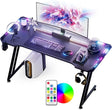 Gaming Desk with LED Lights,47 inch Carbon Fiber Surface RGB Gaming Computer Table