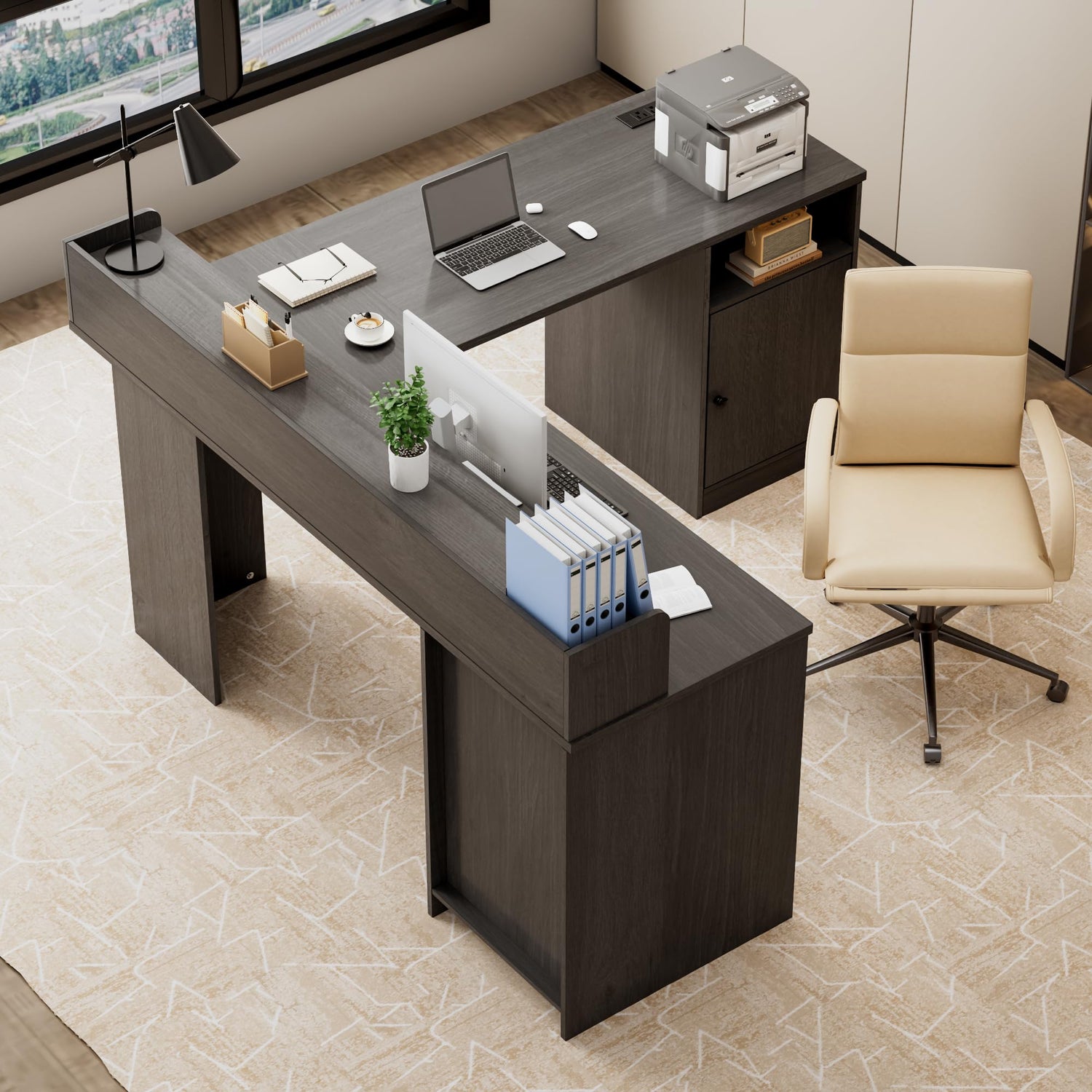 - Easy to Assemble: Your L shaped office desk will arrive in 2 separate packages, so please be patient if you only receive one initially. With detailed instructions and            Â