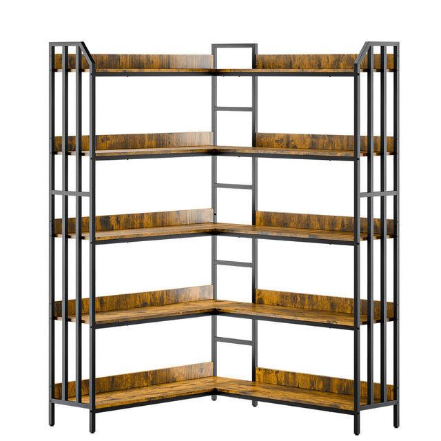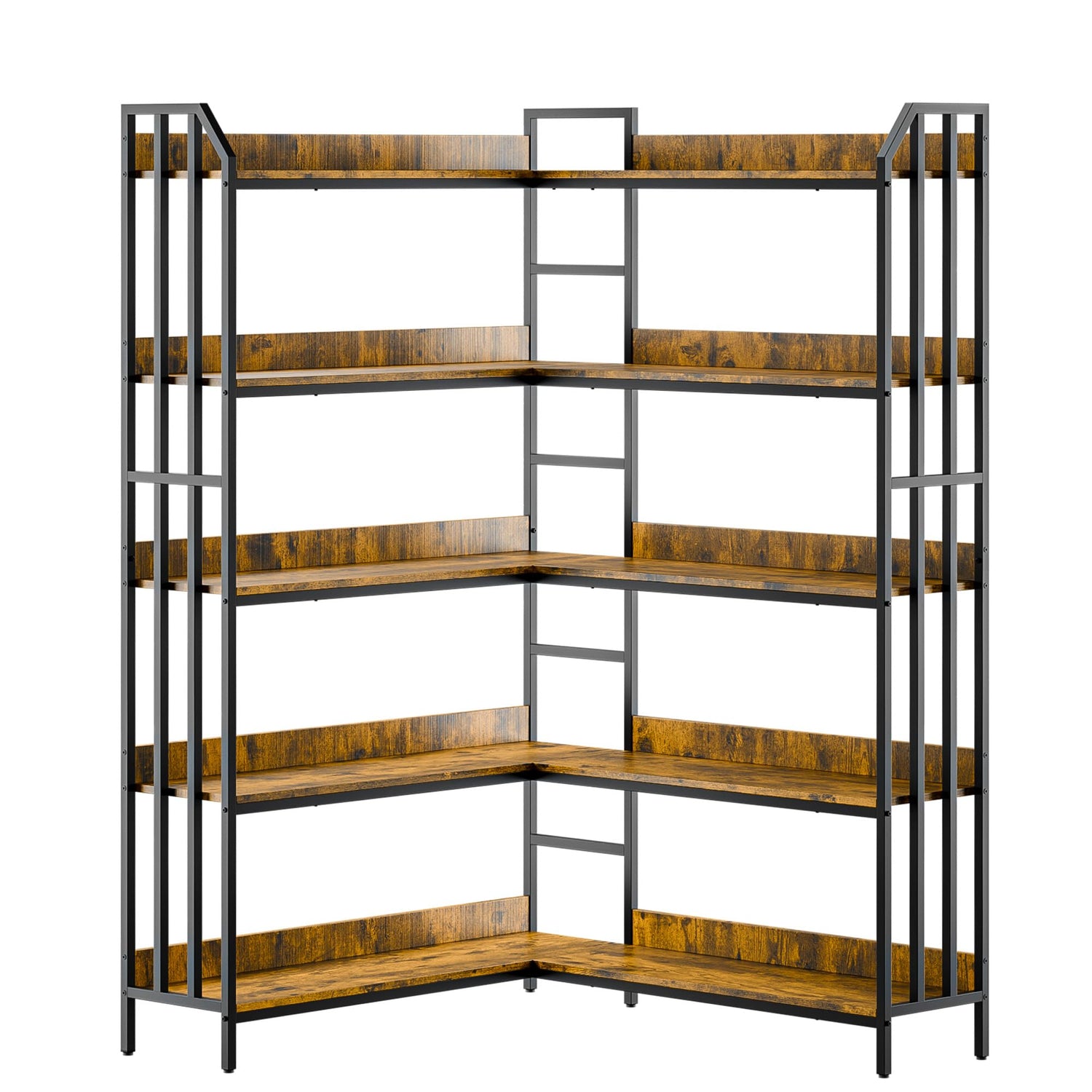 Bookshelf 5 Tiers, Corner Bookcase with Baffles, 70''x47''x44'' Large Industrial Wooden - Brown is backordered and will ship as soon as it is back in stock.