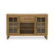 - WELL MADE: Crafted with hardwood solids, mango wood veneer & MDF substrate. Light wood tone finish. 2 cabinets, each with adjustable shelf. Framed glass cabinet doors. Reversible wine rack