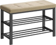Shoe Bench, Storage Bench, Entryway Bench with Cushion, Shoe Shelf - Camel Brown + Ink Black / 23.6"W is backordered and will ship as soon as it is back in stock.