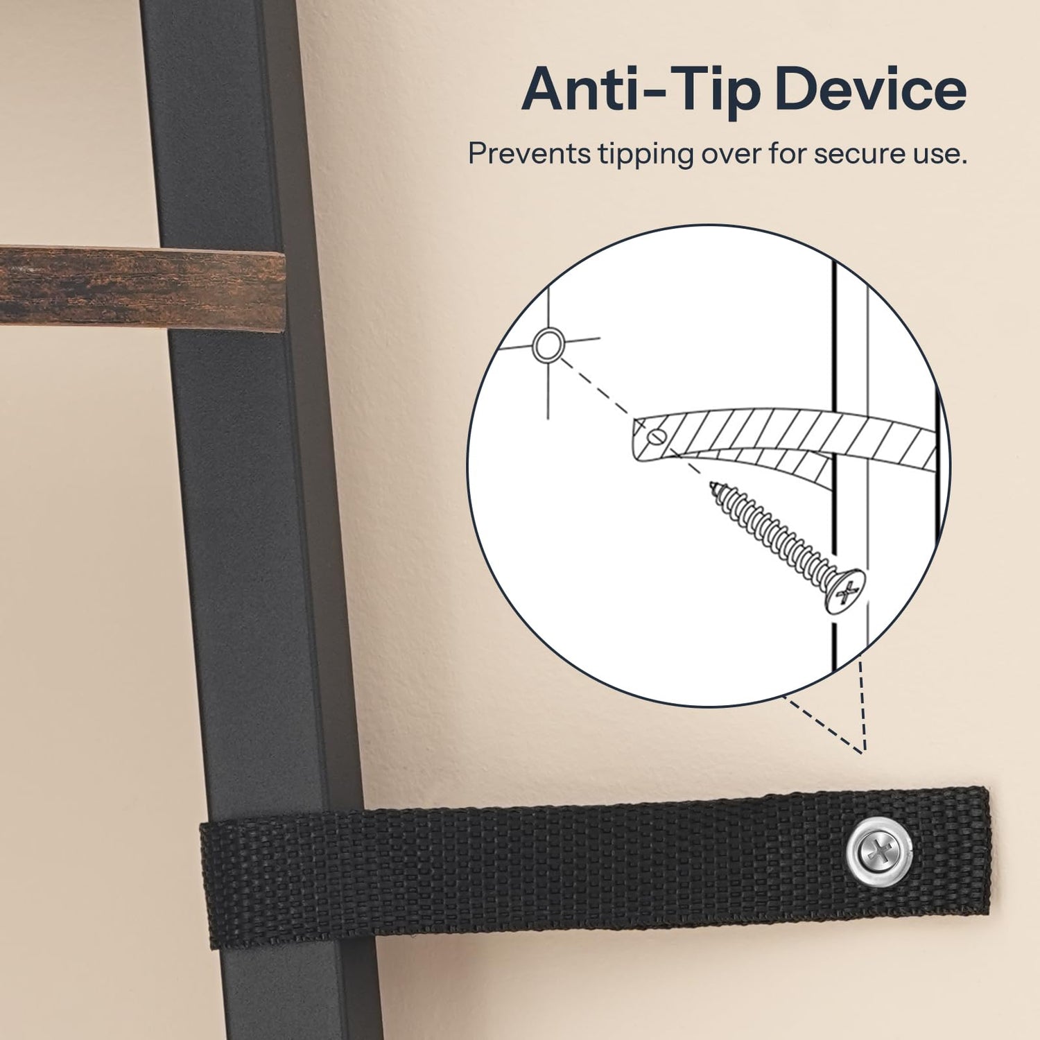 • Crafted from high-quality particleboard and a premium metal frame, this bookshelf is built to last. Each shelf can support up to 35 lbs, ensuring stability. The X-shaped rod and adjustable feet add extra stability, preventing wobbling. An anti-tip kit is included for added safety.