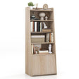 Tier Bookcase, Modern Bookshelf w/ 2 Adjustable Shelves & Flip-up Door, Wood Storage