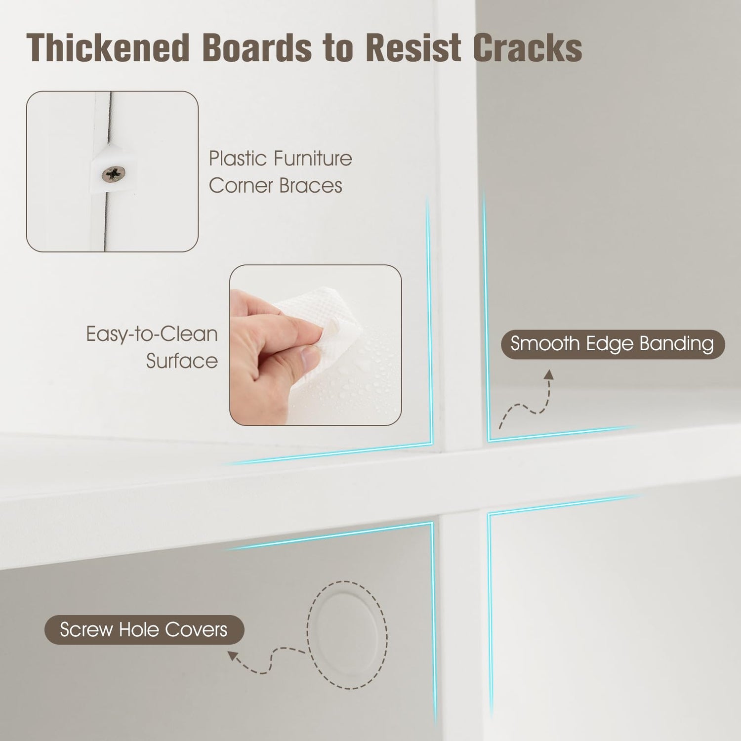 • Strong Wooden Frame: No more sudden cracks. The bookshelf is built with stronger boards that also promote overall load capacity up to 353 lbs. In addition, it is fitted with plastic furniture corner braces to further reinforce the structure.