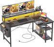 Gaming Desk with Power Outlets and LED Lights, 47 Inch L Shaped Computer Desk