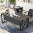 •  The office desk constructed of heavy-duty metal frame and thickened compressed board (1.2 inch) ensure durability and stability. The front baffle of the computer desk provides privacy in conjunction with structural support for the bottom. Make sure to long term use