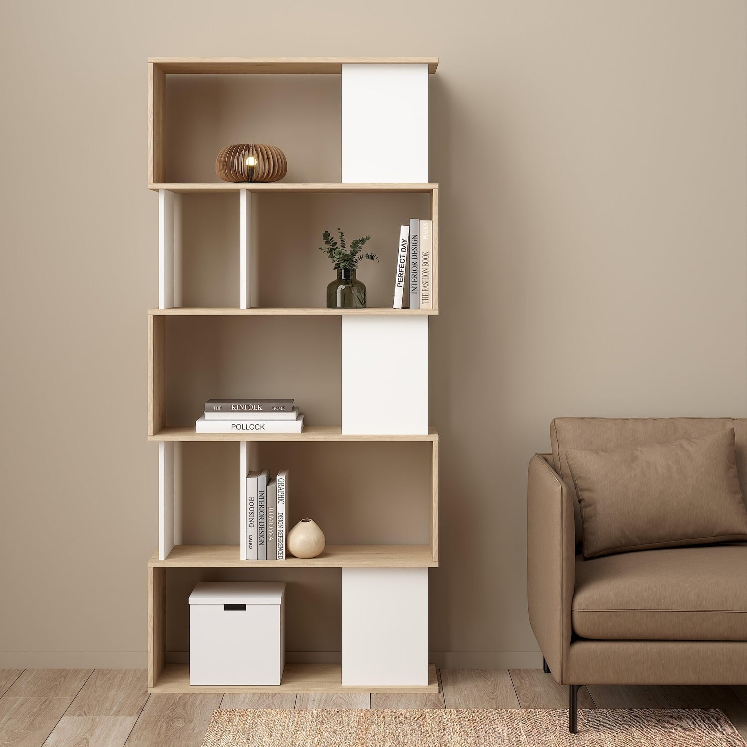 Modern Bookcase, Display Shelf and Decorative Room Divider with 7 Fixed Storage Shelves