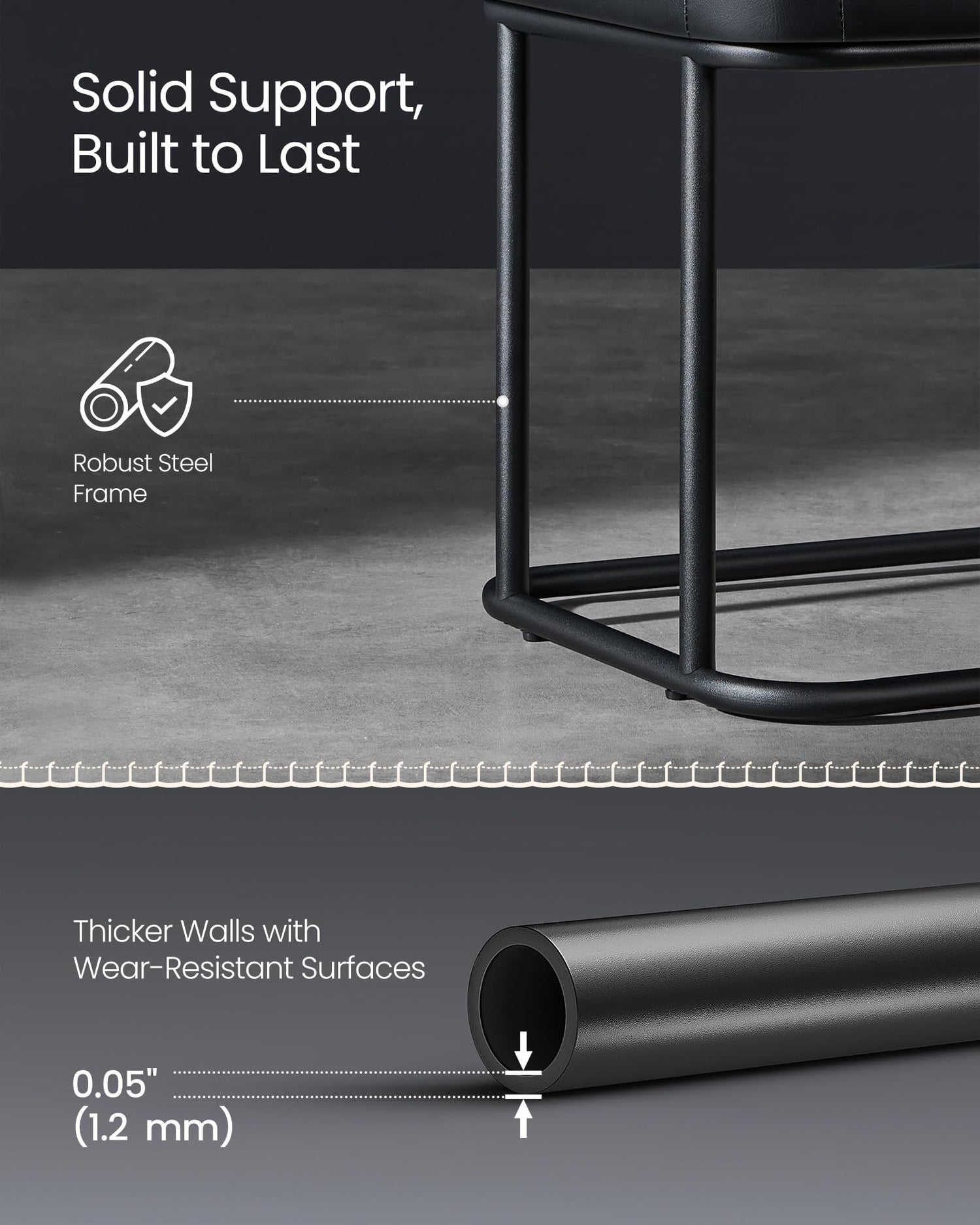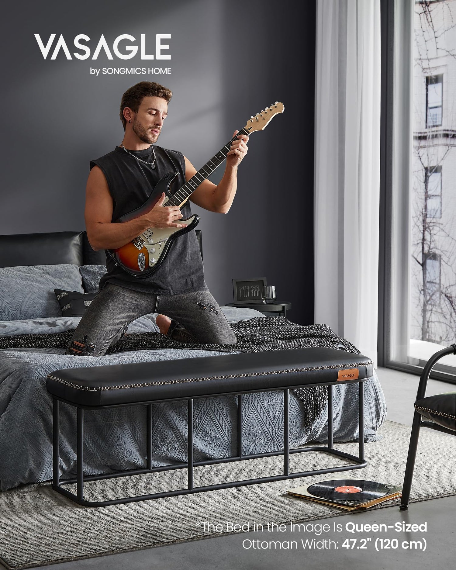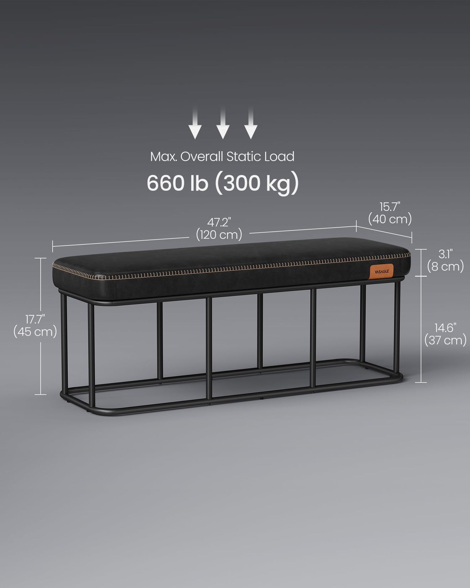- This end of the bed bench, made from premium materials and supported by a sturdy steel frame, is constructed to last. It confidently holds up to 660 lb (300 kg), withstanding the test of time and use