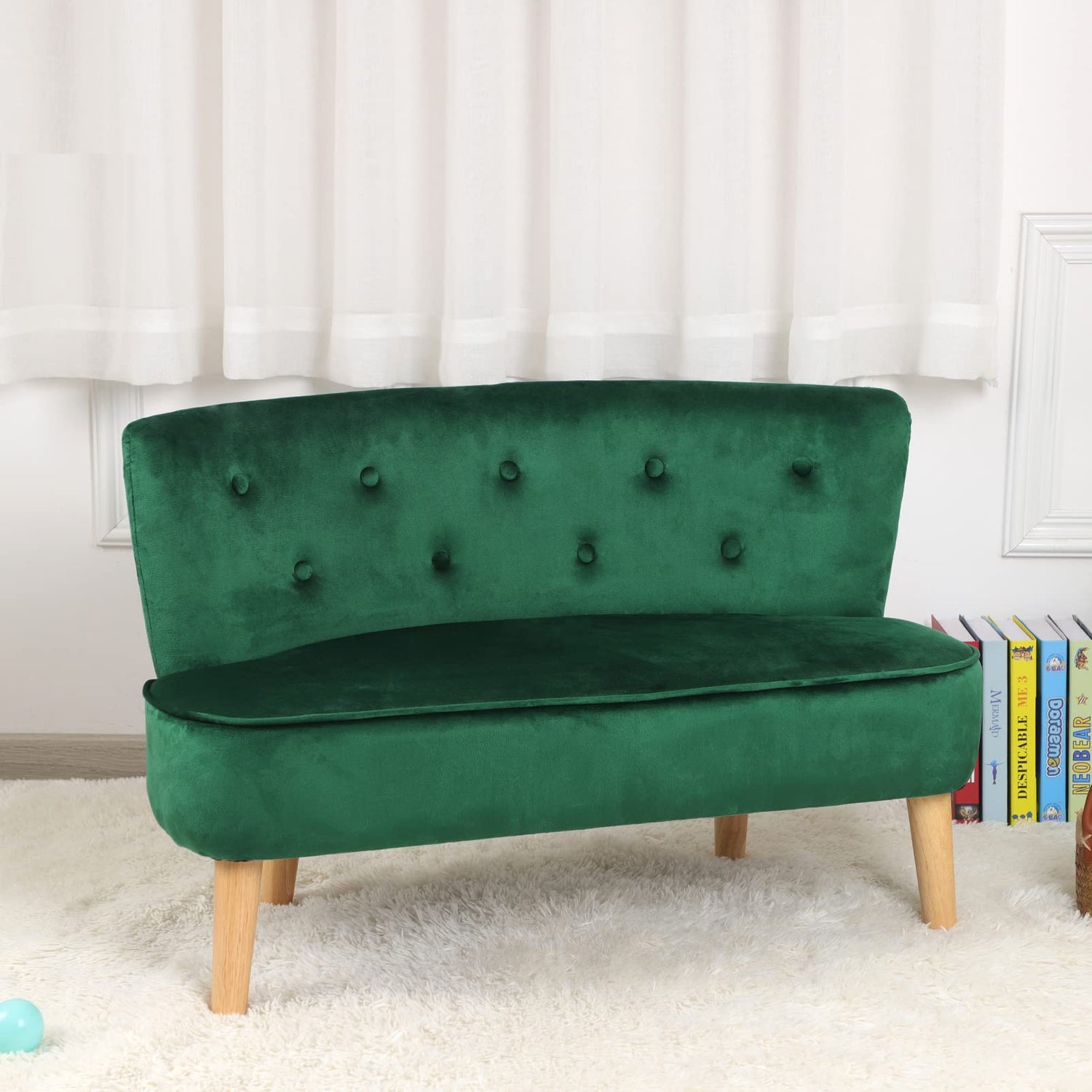 room 2-Seat Kid Sofa Couch with Velvet Fabric,Kid Sofa Chair with Wooden Frame for 3-6
