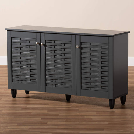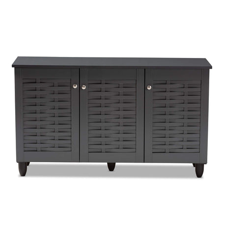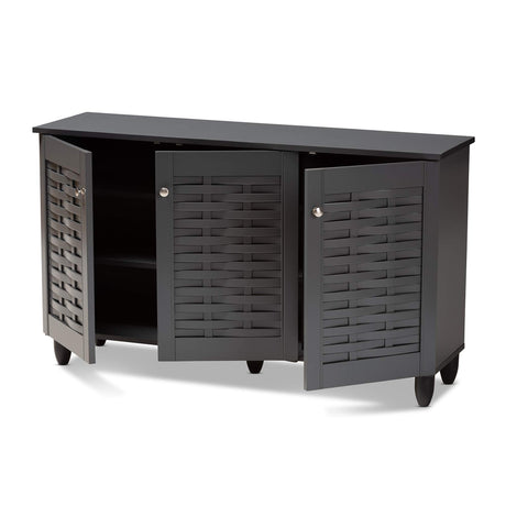 Wadia Modern and Contemporary Dark Gray 3-Door Wooden Entryway Shoe Storage