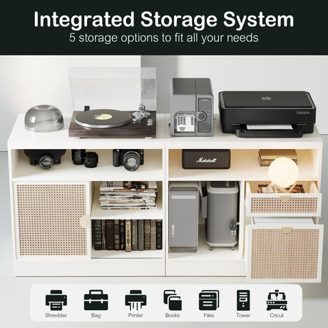 Accent Storage Cabinet Set of 2 Sideboard with Rattan Doors, Boho Buffet Kitchen Bar