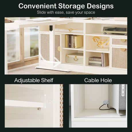 Sideboard Buffet Cabinet, Kitchen Storage Cabinet with Rattan Doors, Liquor Cabinet Bar