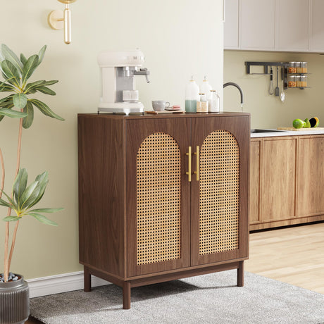 Rattan Sideboard Cabinet with Storage, Accent Cabinet with Feet, Buffet Cabinet with Doors