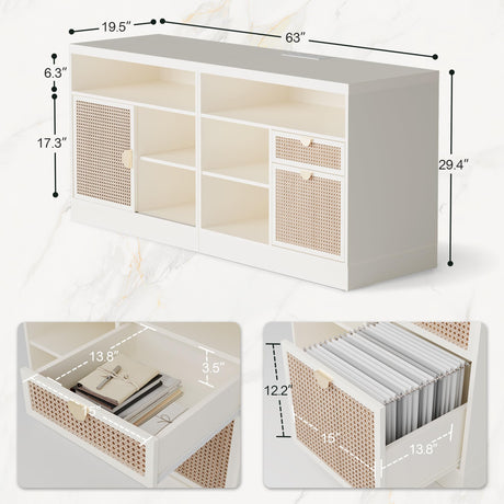 Boho Rattan Storage Cabinet - 3 Door Sideboard Buffet with Adjustable Shelves