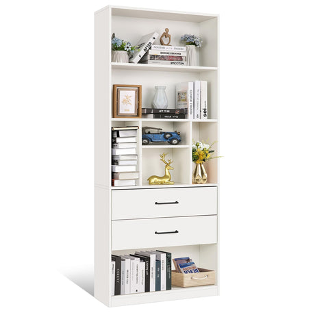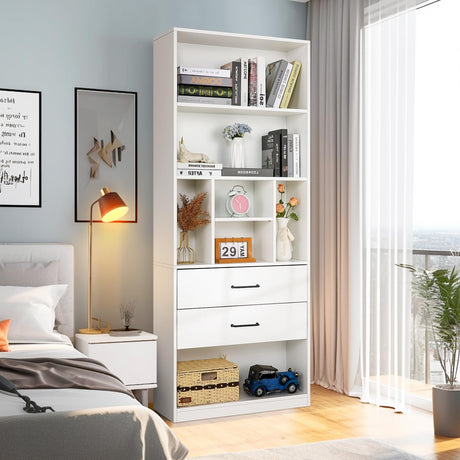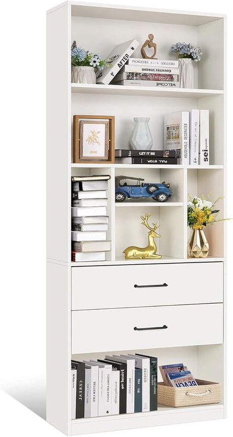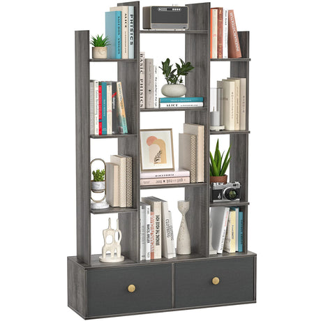 Book Shelf with 2 Drawers Free Standing Bookcase, Office Storage Shelf Organizer