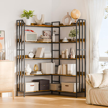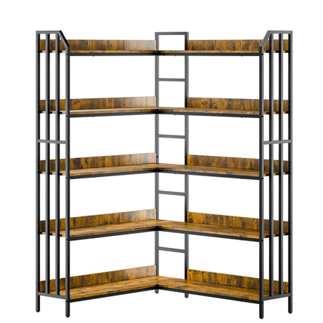 5-Tier L Shaped Bookshelf, Vintage Industrial Corner Bookcase