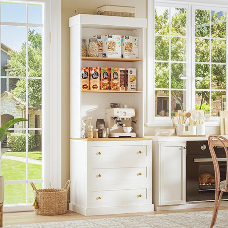 71" Tall Farmhouse Storage Cabinet with Drawers, Large Bookshelf with Adjustable Shelves
