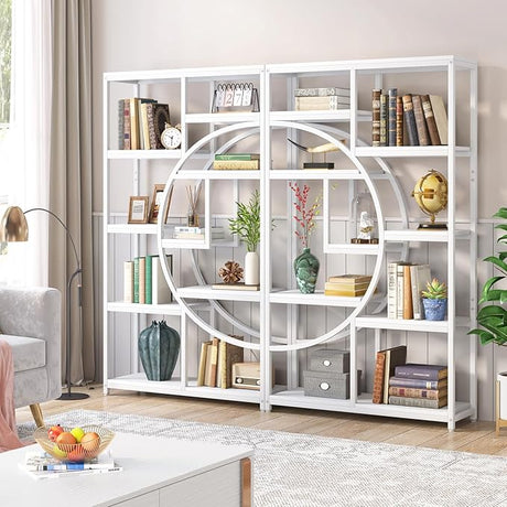 Industrial Bookshelves 6 Tiers Triple Wide Bookshelf, Large Etagere Bookshelf Open