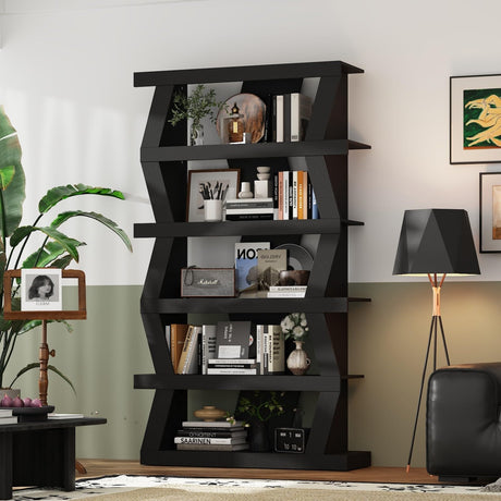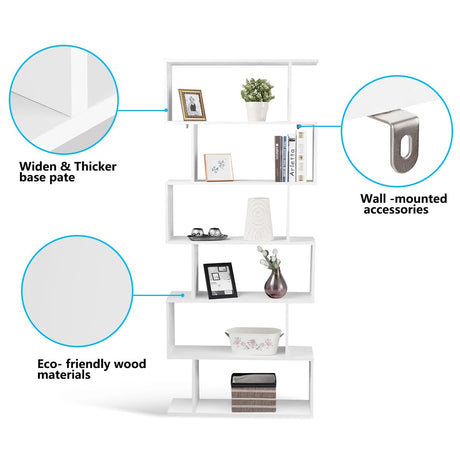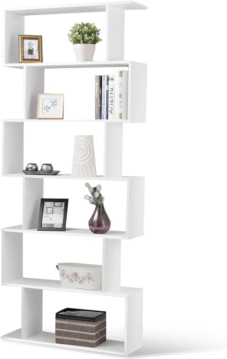 with Storage for Bedroom, Bookshelf Library Tall 6 Tier Large Bookshelf Wall Unit, Modern