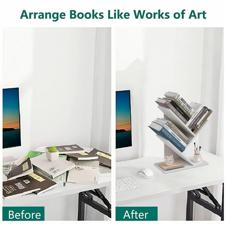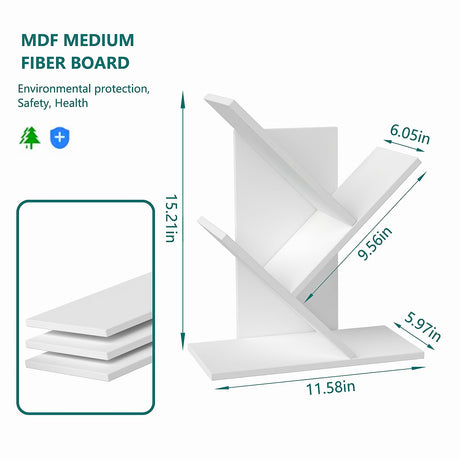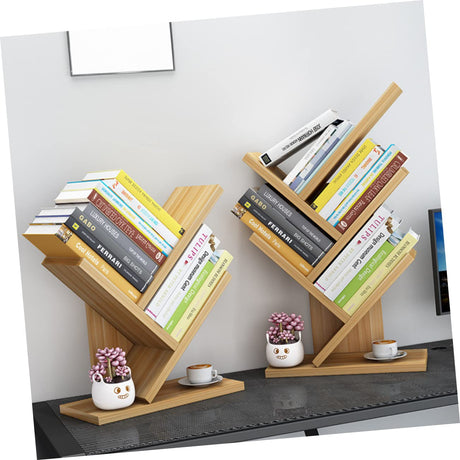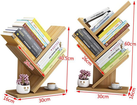 2 Tier Tree Bookshelf, Retro Floor-Standing 2 Shelf Bookcase Storage Rack, Wooden Storage