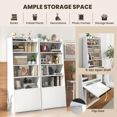Bookshelf with Doors 2PCS, 5 Shelf Bookcase with Acrylic Cabinet Doors,Modern White