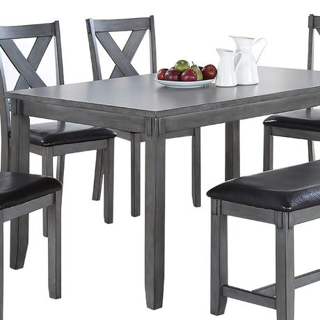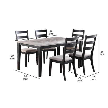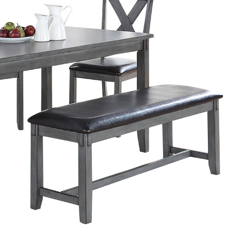 6 Piece Dining Set with Table, 4 Chairs and Bench, Faux Leather, Gray, Black