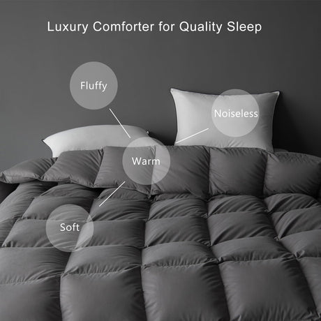 Queen Size Down Comforter - All Season Ultra Soft Goose Down & Feather Fiber Fill