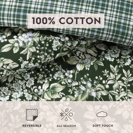 King Comforter Set, Reversible Cotton Bedding with Matching Shams & Bedskirt, Stylish