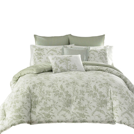 Sage California King Comforter Set 7 Pieces, Jacquard Woven with Damask, Bedding Set