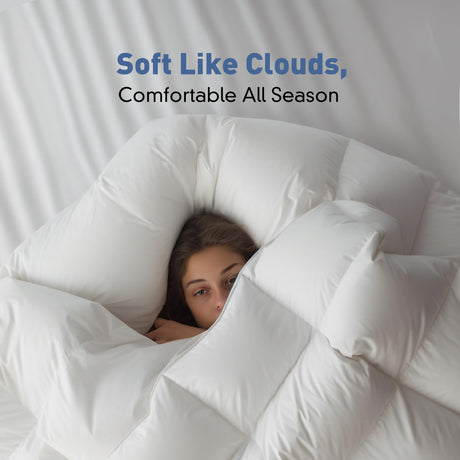 Luxurious Bedding Goose Down Filling Comforter, White (King(102x90inch))