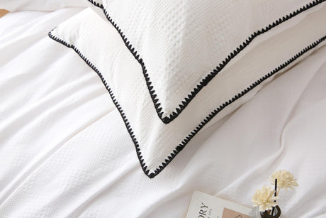 Vintage Oeko Certified Duvet Cover Set, White Waffle Pattern, Elegant Design (King)
