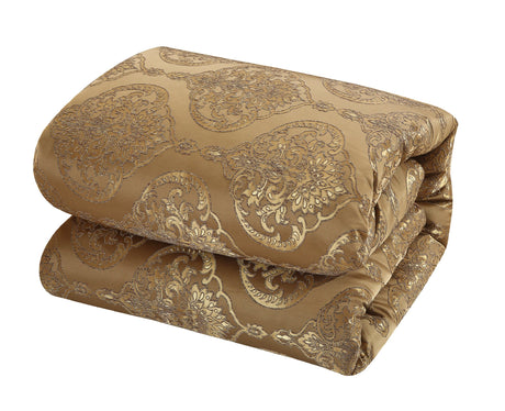 Piece Aubrey Decorator Upholstery Comforter Set and Pillows Ensemble, Queen, Gold