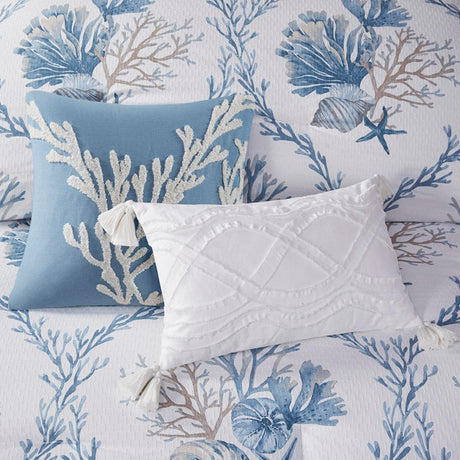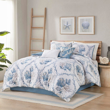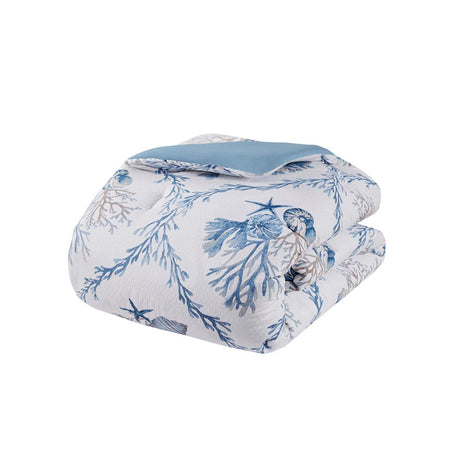Cotton Comforter Set, Oversized Cover, Seashells, Corals, Starfish Print