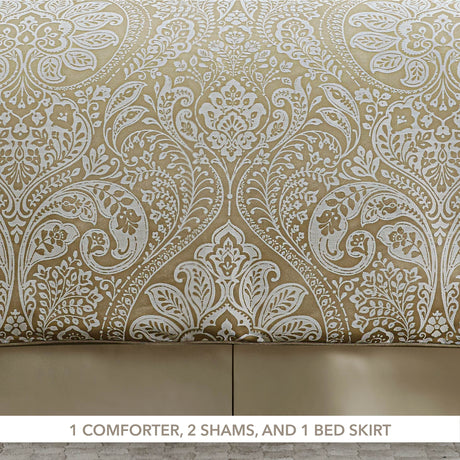 3 Piece King Comforter Set, Gold Metallic Abstract Jacquard Mountain Peaks Pattern