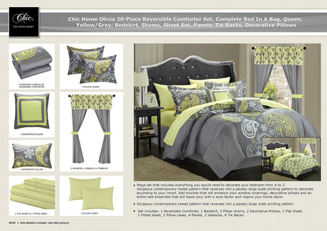 20-Piece Comforter Reversible Paisley Print Complete Bed in a Bag with Sheet Set,
