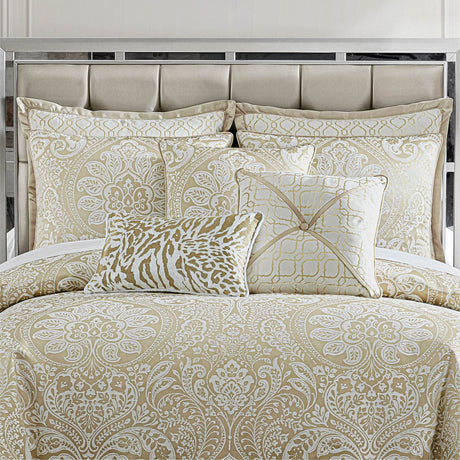 Luxury Comforter Sets Classic Framework Design, Damask Floral Queen Bedding with Euro Shams,