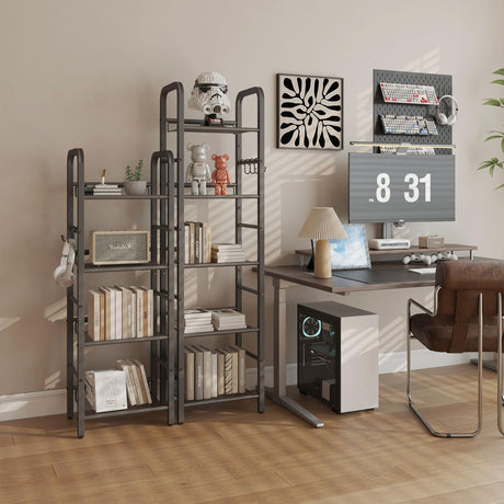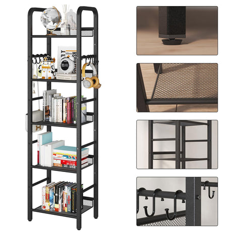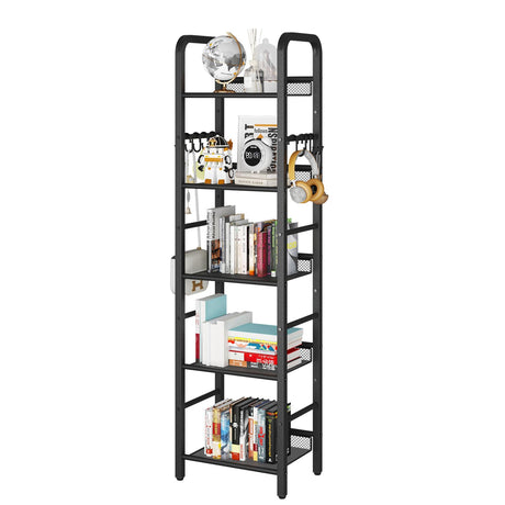 5 Tier Ladder Shelf with Drawer, Tall Bookshelf Storage Shelves, Bookcase Standing Shelf