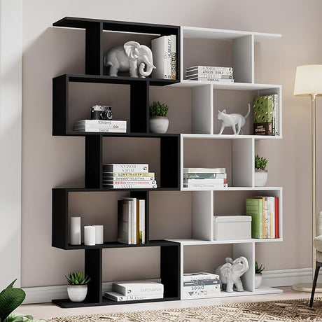 Cozy Castle Set of 2 Geometric Bookcase, S-Shaped Modern Bookshelf, Room Divider