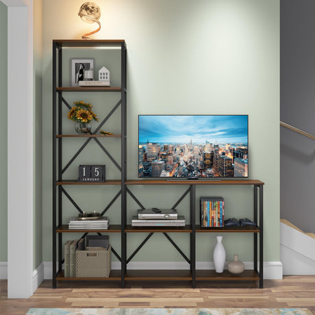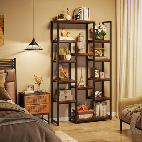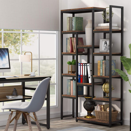 8 Tier Wooden Bookcases and Bookshelves, 67'' Tall Bookcase with 2 Doors and 1 Drawer,