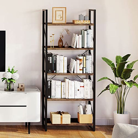 5-Tier Bookshelf, Freestanding Book Shelf, Industrial Minimalist Open Display Storage
