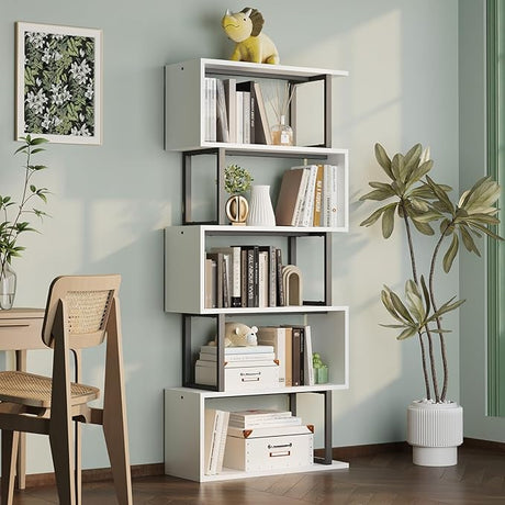 5-Tier 70.4" Tall Bookshelf, S-Shaped Modern Bookcase with Storage Space