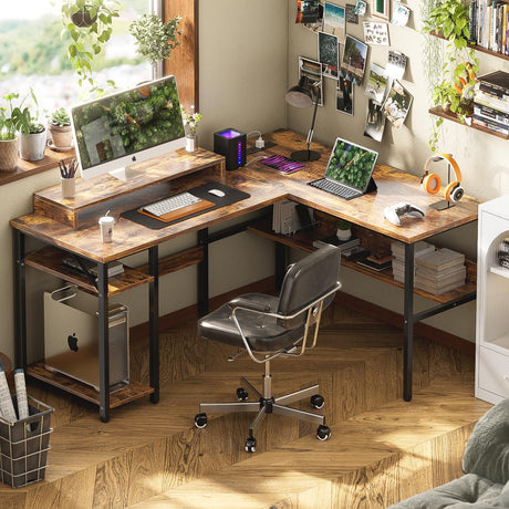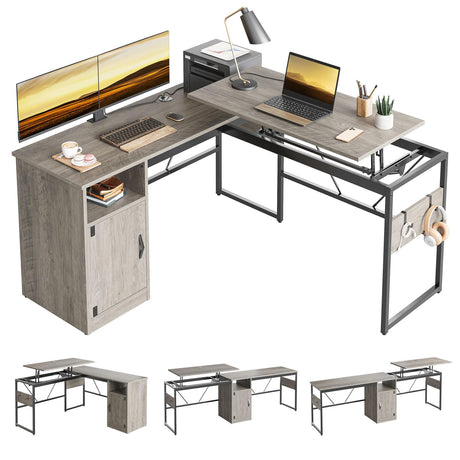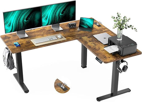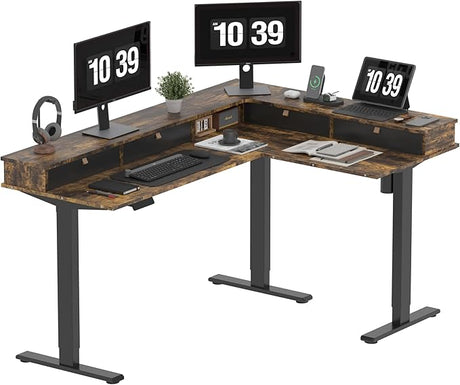 L Shaped Standing Desk Adjustable Height, 60" Corner Computer Desk with Storage