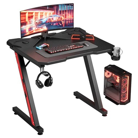 Gaming Desk Computer Desk Z-Shaped Gaming Table with Carbon Fibre Surface