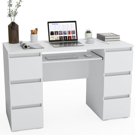 White Computer Desk with File Drawers Cabinet, 55 Inch Home Office Desk