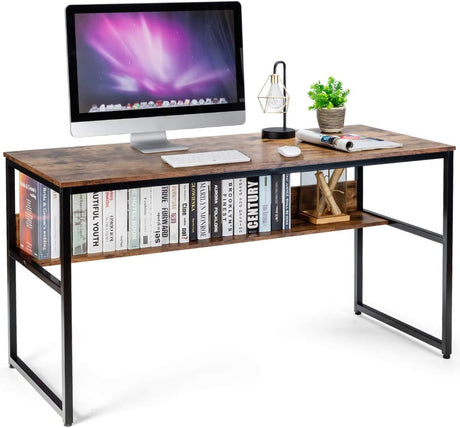 Home Office Computer Desk with 2 Storage Shelves, Industrial Study Writing Desk Workstation Laptop