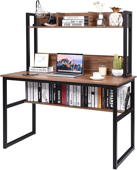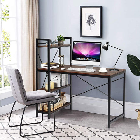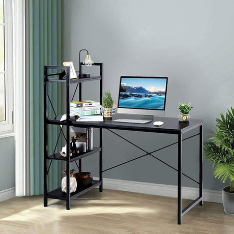 Computer Desk with 4 Tier Shelves, 55 Inch Heavy Duty Writing Study Table