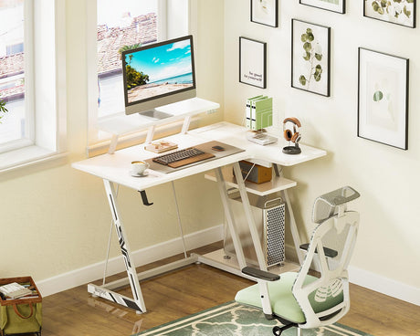 White Gaming Desk L Shaped with LED Lights, Small Corner Computer Desk 39inch